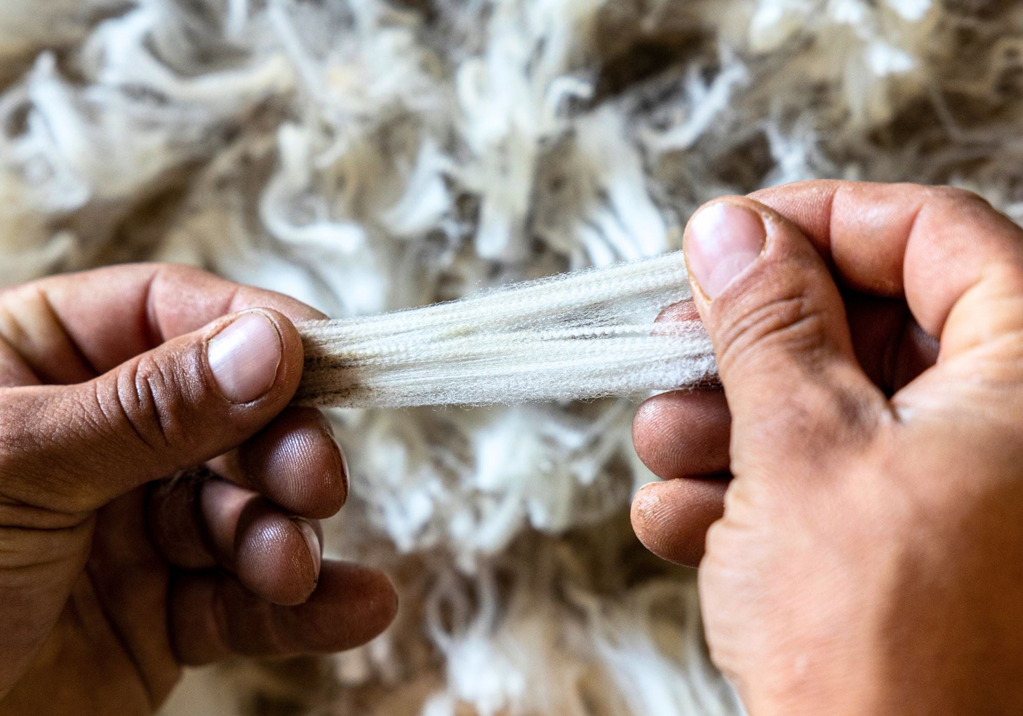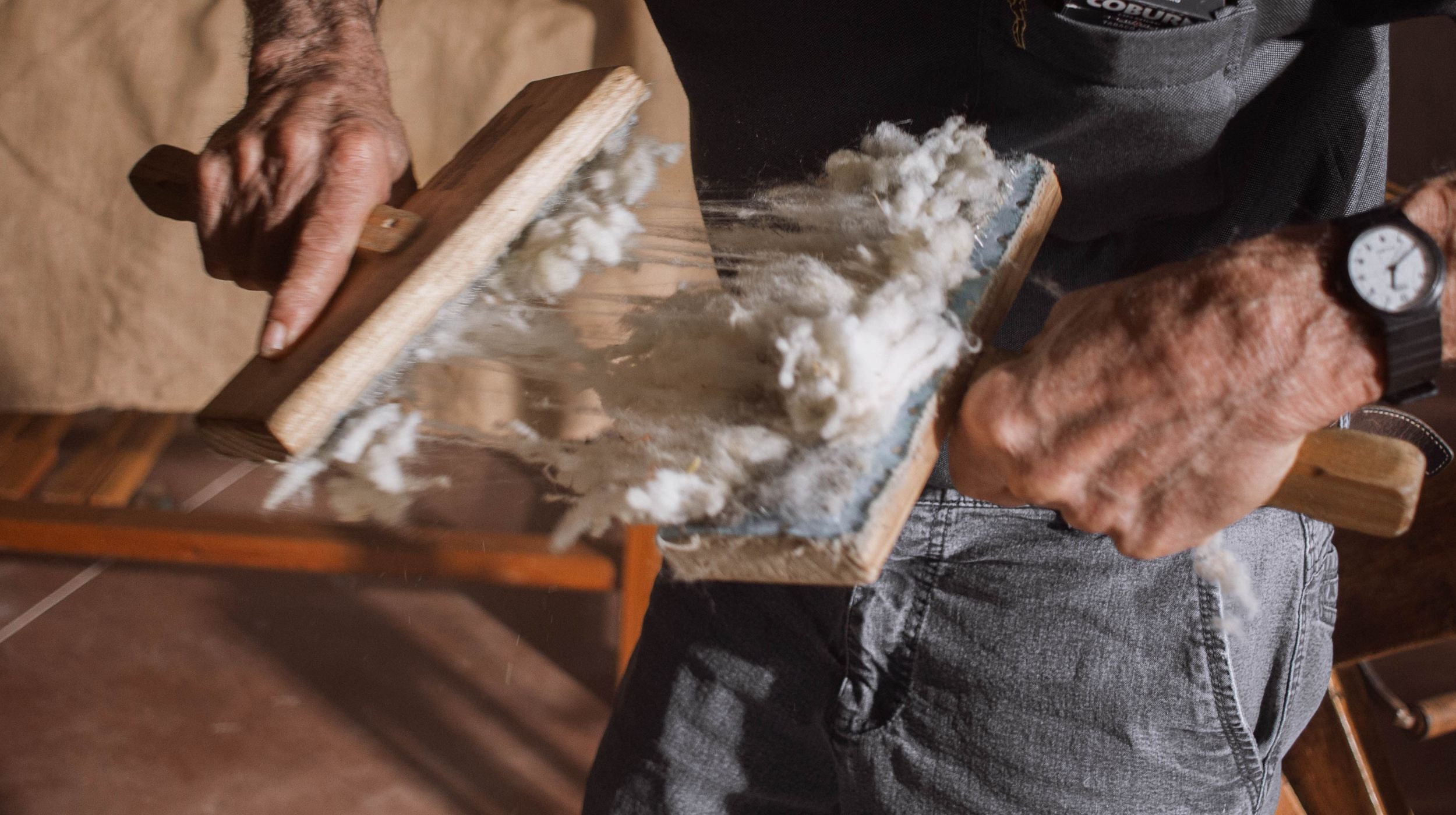 Sorting, washing, carding, and spinning processes. Each project is handled individually, according to its scale and needs, working from defined materials and parameters.